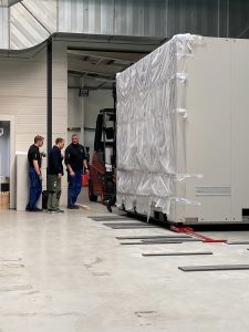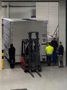 Am 18. März 2020 war es endlich so weit. Nach über einem Jahr Planung und Vorbereitung hielt die neue Digitaldruckanlage Einzug in unsere Druckerei. Mit viel Muskelkraft bahnte sich der schwere Koloss Zentimeter für Zentimeter den Weg zu seinem Standort und soll dort in Zukunft die 2011 in Betrieb genommene „Jupiter 1“ Anlage ersetzen. Neue Druckköpfe und High-End Technologie erlauben dann u.a. eine doppelt so schnelle Druckkapazität im Vergleich zum Vorgänger.
